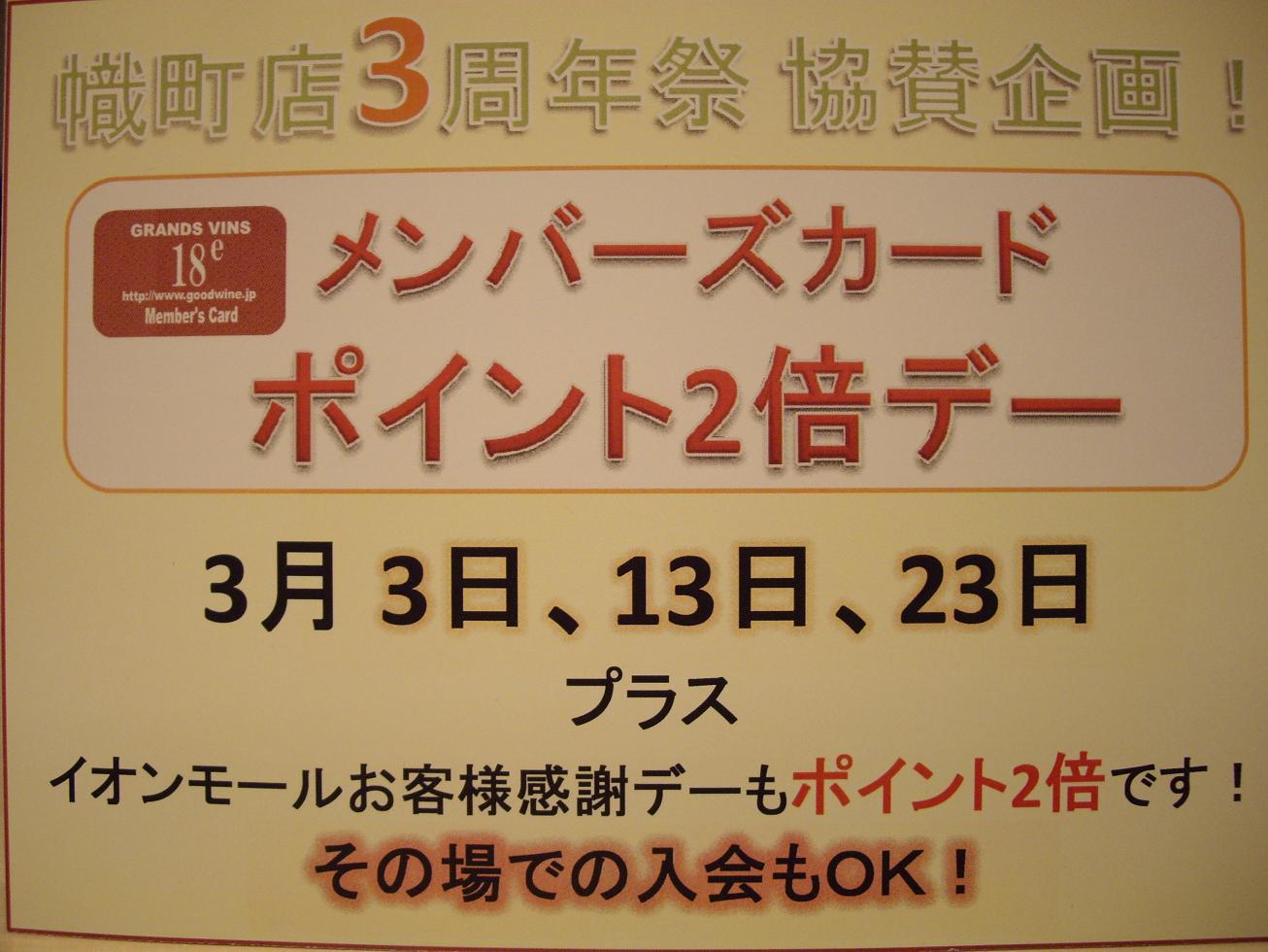 【幟町店/ソレイユ店】幟町店3周年記念 『ポイント2倍デー!!』
