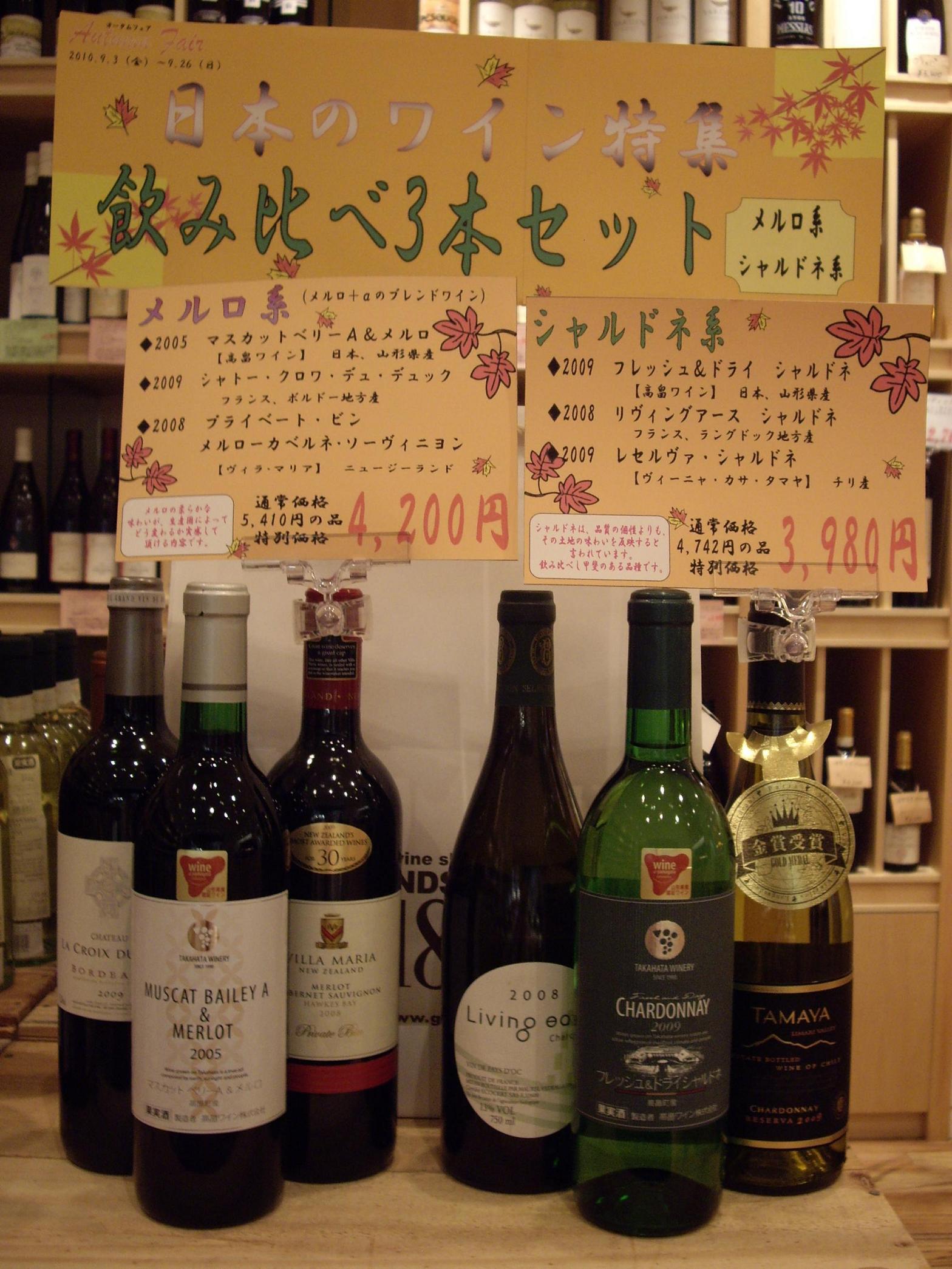 2010オータムフェア ~日本ワイン特集~ “和VS洋 飲み比べ3本セット” 【幟町店/ソレイユ店】