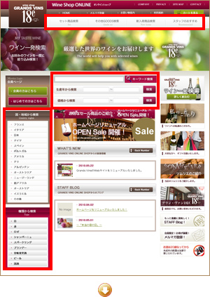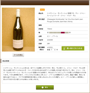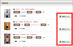 商品一覧が表示されます。 【詳細はこちら】のボタンからワインの詳細ページへ移動します。 |