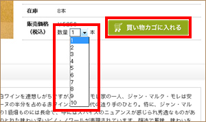 ほしいワインが決まったら、 1.必要本数を確認して 2.【買い物カゴに入れる】をクリックしてください。 |