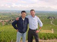 テート氏は「私たちのワイナリーでは、収穫を可能な限り遅らせて8/25~8/30に行いましたが、これが限界でした。茎はまだ熟成しておらず、青っぽいかおりを芳っていますし…。収穫には人手が必要です。ですが、今年は早すぎて季節労働者がどこの造り手でも確保できず、やむなく中学生や高校生をアルバイトに雇っての収穫作業でした。収穫の後も、あまりに糖度が高いので高アルコール度数になってしまい、発酵が止まってしまうものも発生しています。本当に 100年に一度の大変な年です。私の家の資料では、1893年の夏以来の出来事のようですよ」と苦笑。 現地にて日本の皆さんより2ヶ月少々早く、出来たばかりのボジョレー・ヌーボを試飲させて頂きましたが、甘~いネクターのような味でした。 「これから1ヶ月半でどこまで良質のワインに仕上げるかが腕の見せどころ。がんばるよ。でもワインは農産物。人が手を加えて出来ることはせいぜい 20%。今年は思い出深い年になること間違いなしです。お楽しみに」とテート氏。