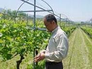 ワインはグローバルな商品。たとえ日本の風土の中で造られても、世界が認めてくれるワインが造れるはず。 「たとえひと樽でも最高のワインを」をテーマに、甲州品種のぶどうを使ったワイン「勝沼甲州樽発酵」の醸造を手掛ける勝沼醸造株式会社(山梨県勝沼町)をご紹介します。 甲州盆地の片隅にある勝沼町は、1200年以上前の奈良時代に、僧の行基が唐より持ち帰った葡萄をこの地に植えたという、まさに日本葡萄発祥の地。そのワインの原料品種「甲州」は、もともとワイン用の品種だったのですが、長い年月の間に自然と大粒となり、みずみずしい生食用品種の様になっていきました。 しかし勝沼醸造では、その甲州種本来のポテンシャルを高め、個性を蘇らせるため、様々な努力をされています。 垣根仕立てのヨーロッパ式畑作り、単一品種畑でのワイン造り、山の斜面を利用した畑の開墾…。あらゆる試行錯誤を繰り返した結果、昨年、パリで開催された国際ワインコンテスト「ヴィナリー・インターナショナル2003」において『甲州特醸樽発酵』が銀賞を受賞しました。日本でも世界に通用するワインが造れることが証明されたのです。 ワイナリーの目の前に広がる葡萄畑番匠田(ばんじょうだ)。そこに生えるシャルドネの木がまさに開花しようとする5月末、蔵主の有賀雄二社長とお会いしました。 お話を伺いながら、たゆまない努力と情熱、ひたむきに信念を貫き通す「ラストサムライ」を見た思いでした。 「産地の風土に向かい、夢を抱き、挑戦し表現するワイン造りをめざし、自社ぶどう栽培に積極的に取り組みたい」と有賀社長。 ワインは農産物。その味わいのほとんどは畑から生まれます。これからも長い長い挑戦が繰り返されることでしょう。 蔵人が 思いを込めし 葡萄の木 茂る葉の影 今花盛り