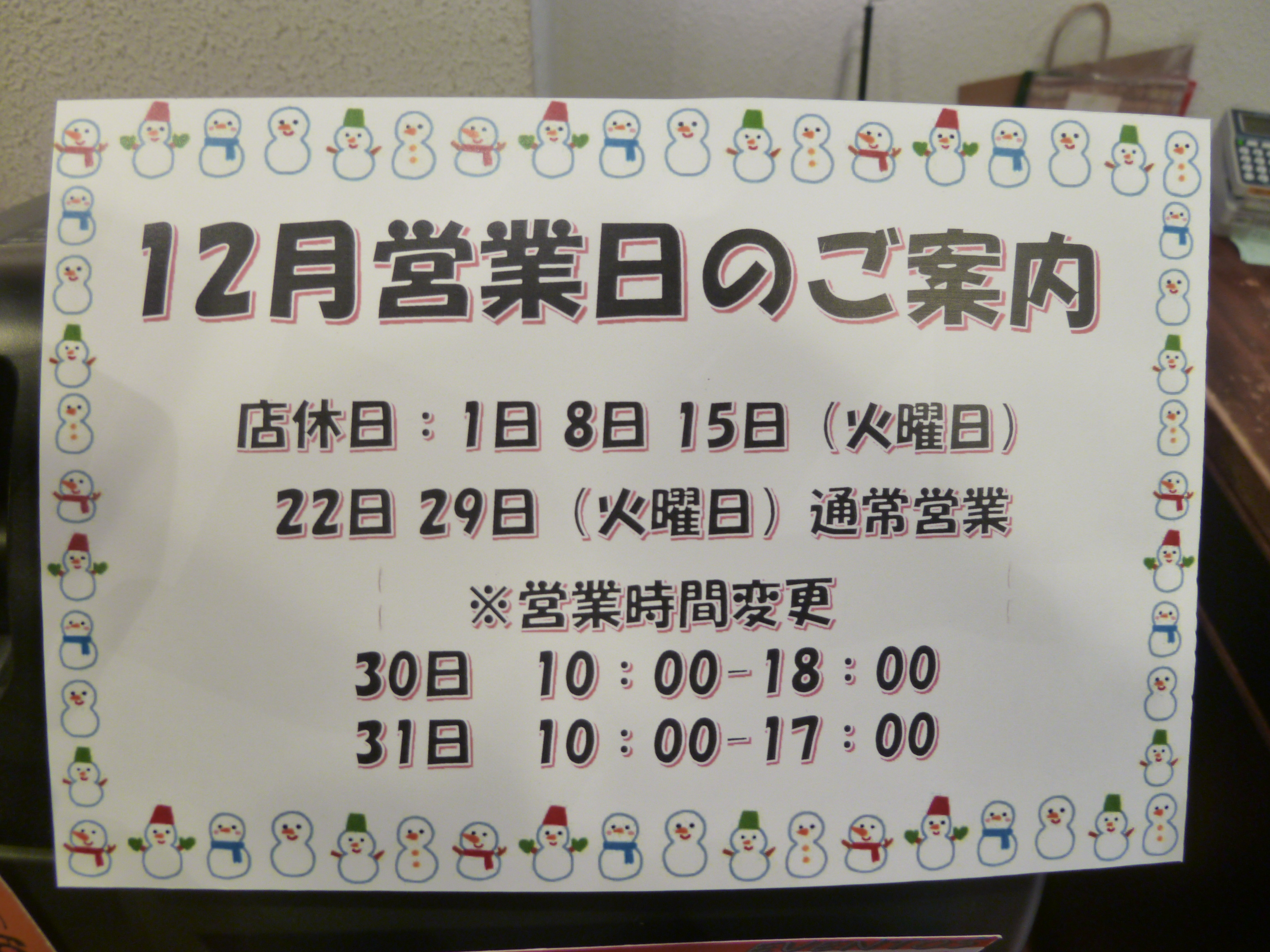12月営業日のお知らせ